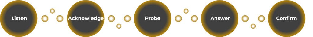 TIP: The most common issue is jumping from Listen to Answer without Acknowledging, or Probing enough.